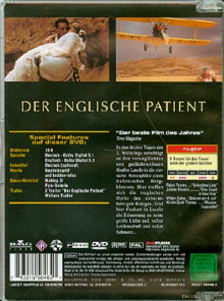 Erleben Sie das mit Academy Awards und anderen renommierten Preisen ausgezeichnete Meisterwerk, "Der englische Patient", in gestochen scharfer Qualität mit dieser exklusiven Deluxe Widescreen Edition auf DVD. Diese herausragende Ausgabe brilliert durch ihre erstklassige Bild- und Tonqualität, die es Ihnen ermöglicht, die intensive Geschichte und die emotionale Tiefe des Films vollends zu genießen.