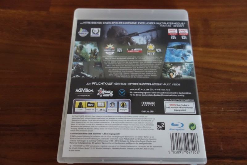 Erlebe die revolutionäre und packende Welt des Call of Duty 4: Modern Warfare für die PlayStation 3! Tauche ein in ein explosives Abenteuer, das Militärschützen neu definiert. Mit herausragenden Grafiken, fesselnden Gameplay-Mechaniken und einer intensiven Storyline, die dich an den Rand eures Sitzes fesseln wird. Entwickelt von Infinity Ward und veröffentlicht von Activision, nimmt dich dieses legendäre Spiel mit auf eine epische Reise durch realistische Schlachtfelder und moderne Kriegsführungstaktiken. Komplett in Deutsch erlebst du das Spiel so, wie es gedacht war.