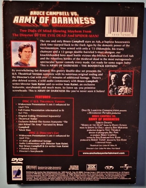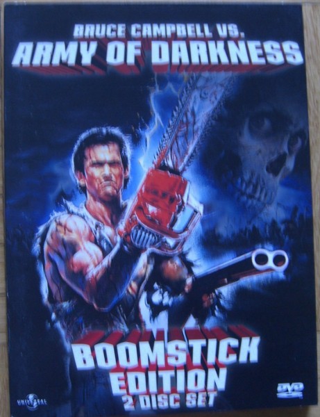 Erleben Sie mit der "Army of Darkness Boomstick Edition 2DVD, RC1" ein legendäres Meisterwerk des Horrorkinos hautnah. Diese zweidiskige DVD-Edition führt Sie zurück in die 1990er Jahre, als der Film das Publikum mit seiner einzigartigen Mischung aus Horror, Comedy und Action begeisterte.