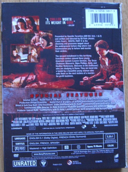 Erleben Sie spannenden und intensiven Horror pur mit der US-DVD von "Hostel Part II" im Unrated Director’s Cut. Dieses Meisterwerk unter der Regie von Eli Roth und produziert von Quentin Tarantino ist ein absolutes Muss für jeden Horror-Fan.