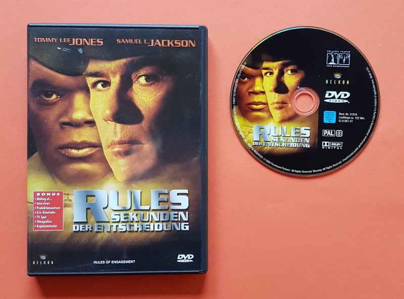 Erleben Sie den packenden Kriegsfilm "Rules - Sekunden der Entscheidung" auf DVD, der Ihnen spannende Unterhaltung und intensive Momente bietet. Mit einer Starbesetzung, bestehend aus Tommy Lee Jones und Samuel L. Jackson, bietet dieser Film ein atemberaubendes Schauspiel. Sie erleben die Komplexität militärischer Entscheidungssituationen und die dramatischen Entwicklungen, die daraus resultieren. Die DVD beinhaltet neben dem Hauptfilm auch exklusives Bonusmaterial wie ein Making-of, Interviews, Produktionsnotizen, US-Kinotrailer, TV-Spots, Filmografien und einen Regiekommentar. Dieses umfangreiche Zusatzmaterial ermöglicht einen tiefen Einblick in die Entstehung des Films und die Arbeit der Schauspieler und des Teams.
