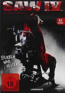 "Saw IV - KJ Fassung" ist ein unverzichtbares Sammlerstück für jeden Liebhaber des Grauen. Die düstere Covergestaltung mit dem geheimnisvollen, in Rot gehüllten Charakter in einem elektrischen Stuhl symbolisiert die grausamen Szenarien, die in diesem Film auf Sie warten und lockt förmlich darauf, den Weg in Ihre Horror-Kollektion zu finden.