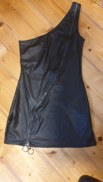 Ein absoluter Hingucker und Must-have für extravagante Mode-Liebhaberinnen: Dieses Oneshoulder Mini-Kleid in Größe S (36-38) ist die perfekte Mischung aus Anmut und Einzigartigkeit. Sein glänzend schwarzes Material verleiht Ihnen eine schlanke Silhouette und betont zugleich Ihren individuellen Stil. Das markante Detail dieses Kleides ist ohne Zweifel der durchgehende Reißverschluss, der vom oberen Rand diagonal über die komplette Länge verläuft und mit eleganten Ringen an den Ziehern endet. Dieses Designelement bietet sowohl eine praktische Funktion als auch einen attraktiven optischen Akzent.