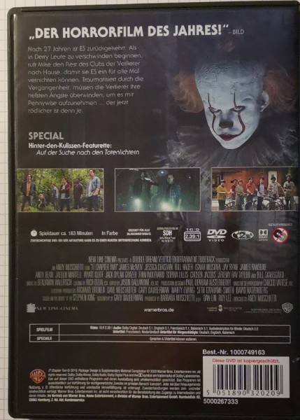 Holen Sie sich jetzt die DVD "ES (2019) - Kapitel 2" und erleben Sie einen unvergesslichen Horror-Abend. Die neuwertige DVD ist ein perfektes Geschenk für Fans des Genres und Sammler gleichermaßen. Tauchen Sie noch tiefer in die düstere Welt von Stephen King ein und lassen Sie sich von Pennywise das Fürchten lehren!