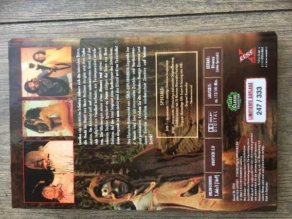 Inkl. der unzensierten und digital remasterten 112 minütigen Hardcore-Langversion sowie der unzensierten 101 minütigen Originalfassung (Zombieversion), weiterem Alternativ-Footage und weiteren Extras.