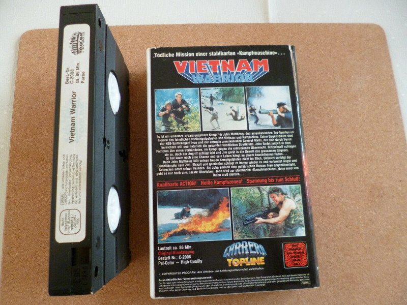 Als VHS-Video ist "Vietnam Warrior" mehr als nur ein Film; es ist ein Sammlerstück, das besonders für Liebhaber des Retro-Charmes und Sammler von klassischen VHS-Kassetten einen hohen Wert hat. Die robuste Kassette und das ikonische Coverdesign spiegeln die Ästhetik der 80er Jahre wider und machen es zu einem nostalgischen Highlight in jeder Sammlung.