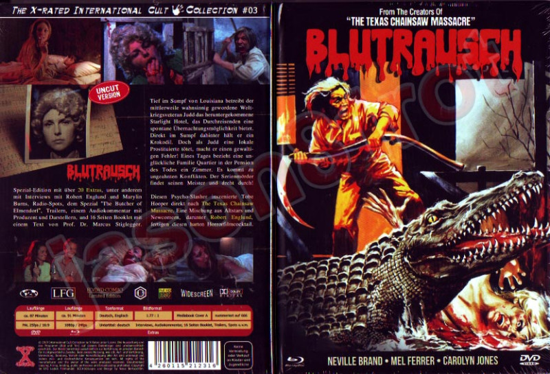 Diese limitierte Ausgabe im Mediabook-Format zeichnet sich durch ein exklusives Cover-Design aus, das nicht nur Sammlerherzen höher schlagen lässt, sondern auch eine hervorragende Ergänzung für jede Horror-Sammlung darstellt. Die aufwendige Aufmachung macht "Blutrausch - Eaten Alive" zu einem echten Sammlerstück und einem Highlight jeder Filmnacht.