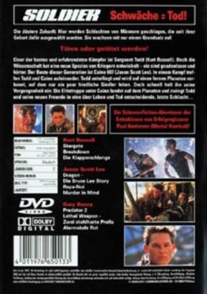 Die "Soldier - Exklusiv-Fassung" auf DVD ist ein Muss für jeden Sammler und Fan von Science-Fiction-Blockbustern. Dank der detailreichen Gestaltung des Covers ist diese Ausgabe auch optisch ein Highlight in jeder Filmsammlung.