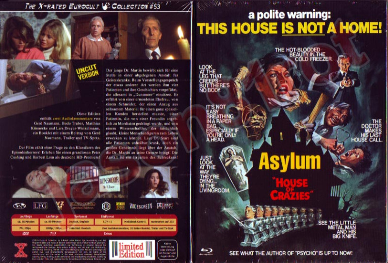 Tauchen Sie ein in die unheimliche Atmosphäre des klassischen Horrorfilms "Asylum - Irrgarten des Wahnsinns". Diese spezielle Edition ist ein Muss für jeden Horrorfilm-Fan und Sammler. Diese uncut Version bringt die schaurigsten Szenen in HD-Qualität direkt in Ihr Wohnzimmer und sorgt für ein unvergleichliches Filmerlebnis. Der Film erzählt die Geschichte eines jungen Arztes, der sich einer kniffligen Aufgabe stellt und dabei den unheimlichsten Schrecken begegnet. Mit einer atmosphärischen Inszenierung und hochkarätigen Schauspielern wie Peter Cushing und Herbert Lom verspricht dieser Film Spannung pur.