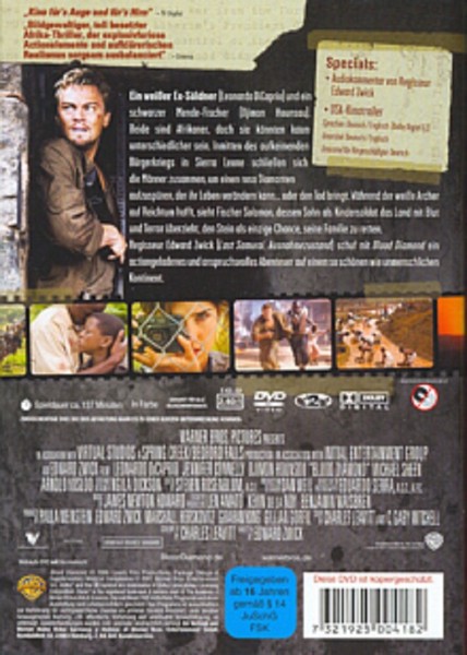 Die DVD präsentiert den Film in herausragender Qualität und bietet Ihnen die Möglichkeit, die packenden Performances der Oscar-nominierten Schauspieler hautnah mitzuerleben. Mit fünf Oscar®-Nominierungen ist "Blood Diamond" ein Muss für jeden Sammler von Krimis und Thrillern. Der Film verbindet eindrucksvoll brisante Themen mit persönlichem Drama und spiegelt die schmutzigen Geschäfte der Diamantenindustrie wider.