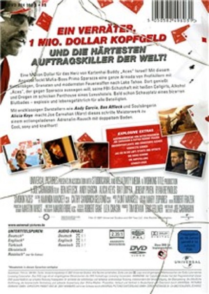 Tauchen Sie ein in ein atemberaubendes Action-Abenteuer mit der DVD von "Smokin' Aces", einem absoluten Highlight im Action-Genre, das Ihre Sinne pulsieren lässt! Dieses fesselnde Meisterwerk wartet mit einer Spitzenbesetzung auf, darunter Ben Affleck, Andy Garcia, Alicia Keys, Ray Liotta, und Ryan Reynolds.