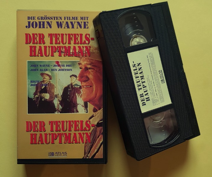 Erleben Sie das epische Western-Abenteuer „Der Teufelshauptmann“ mit der unvergleichlichen Filmikone John Wayne in der Hauptrolle, jetzt exklusiv auf VHS. Diese Kassette, herausgegeben vom renommierten Atlas Verlag, bringt Ihnen die zeitlose Geschichte des tapferen Kavallerieoffiziers Nathan Brittles in der titelgebenden Rolle, der sich den Herausforderungen des wilden Westens stellt. Begleitet wird Wayne von einer beeindruckenden Besetzung, bestehend aus Joanne Dru, John Agar und Ben Johnson. Genießen Sie die authentische Atmosphäre und die meisterhafte Inszenierung von Regisseur John Ford, der diesen Film zu einem unvergesslichen Erlebnis gemacht hat. Ein Muss für jeden Western-Fan und ein echtes Sammlerstück! Greifen Sie jetzt zu und erweitern Sie Ihre Sammlung mit diesem seltenen VHS-Schatz.