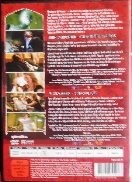 Tauchen Sie ein in die düsteren Welten des Horrors mit der DVD "CHOCOLATE & CIGARETTE BURNS". Diese exklusive Sammlung bietet zwei unvergessliche Horrorfilme, die garantiert Ihr Blut in den Adern gefrieren lassen. Mit Beiträgen von renommierten Regisseuren, Mick Garris und John Carpenter, wird diese DVD zu einem Muss für jeden Horrorfan.