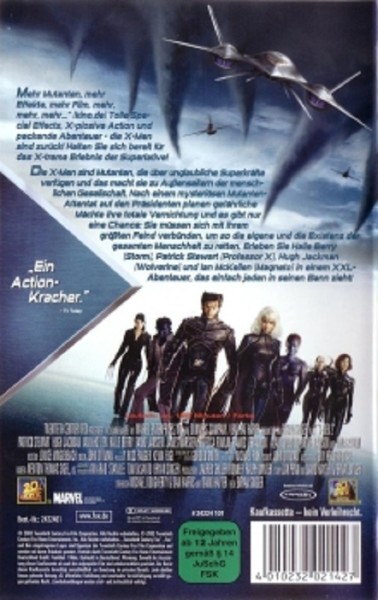 Erleben Sie den atemberaubenden Sci-Fi-Klassiker "X-Men 2" auf VHS und tauchen Sie ab in die spannende Welt der Mutanten! Diese Kassette bietet Ihnen nicht nur nostalgische Gefühle, sondern auch hochkarätige Unterhaltung mit einer mitreißenden Handlung und erstaunlichen Special Effects. Sehen Sie Patrick Stewart in seiner legendären Rolle und genießen Sie die brillante Umsetzung dieses Marvel-Epos.