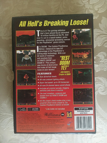 verkaufe, aus Sammlung das Game DOOM-1-2 für die Playstation 1 US-Version MEGA-RAR-Sammlerstück!!!