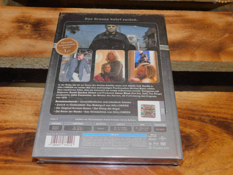 Erleben Sie die ungeschnittene Version des legendären Horrorfilms "Halloween (2018)" in der exklusiven Mediabook C RETRO OVP-Edition. Diese Sammlerausgabe bieten Liebhabern und Neueinsteigern gleichermaßen das ultimative Filmerlebnis mit einer perfekten Mischung aus Nostalgie und modernem Horrorkino. Die hochwertige Verpackung im Retro-Design und die limitierte Auflage von nur 333 Stück machen dieses Mediabook zu einem absoluten Muss für jede gut sortierte Filmsammlung.