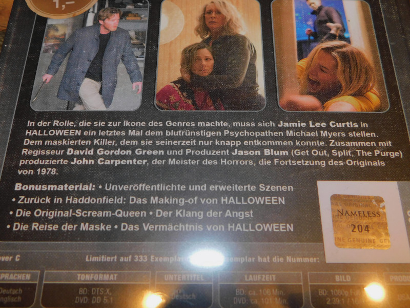Die Collector’s Edition von Nameless Media umfasst neben der Blu-ray auch zahlreiche Extras, die das Herz jedes Horror-Fans höher schlagen lassen. Die Qualität des Bild- und Tondesigns ist überwältigend und lässt Sie tief in die düstere Atmosphäre des Films eintauchen. Das Cover wird von einer fesselnden Szene dominiert, die den tödlichen Griff von Michael Myers in all seiner grauenvollen Pracht zeigt.