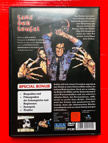 Erleben Sie den kultigen Horrorfilm „Tanz der Teufel“ (The Evil Dead - Part 1) in einer exklusiven Special Collector’s Edition auf DVD. Diese Ausgabe ist ein Muss für jeden Horrorfan und Liebhaber des Kultklassikers von Sam Raimi.