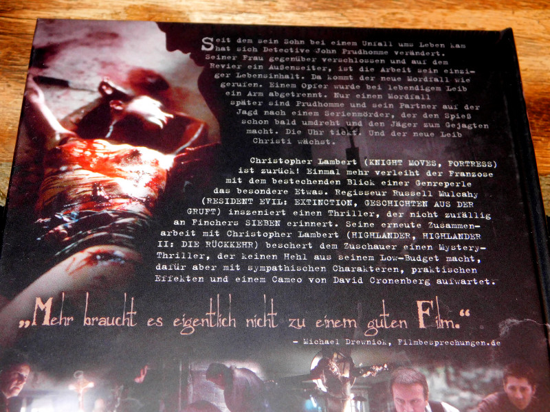 Die Edition ist liebevoll und aufwendig gestaltet. Das Cover des Mediabooks zeichnet sich durch eine beeindruckende und düstere Grafik aus, die einen Mann im Kampf zeigt, umgeben von einer unheilvollen, düsteren Atmosphäre. Mit Pistole bewaffnet und in einer dramatischen Pose, kämpft er gegen eine übernatürliche Präsenz, was sofort Neugier und Spannung weckt.