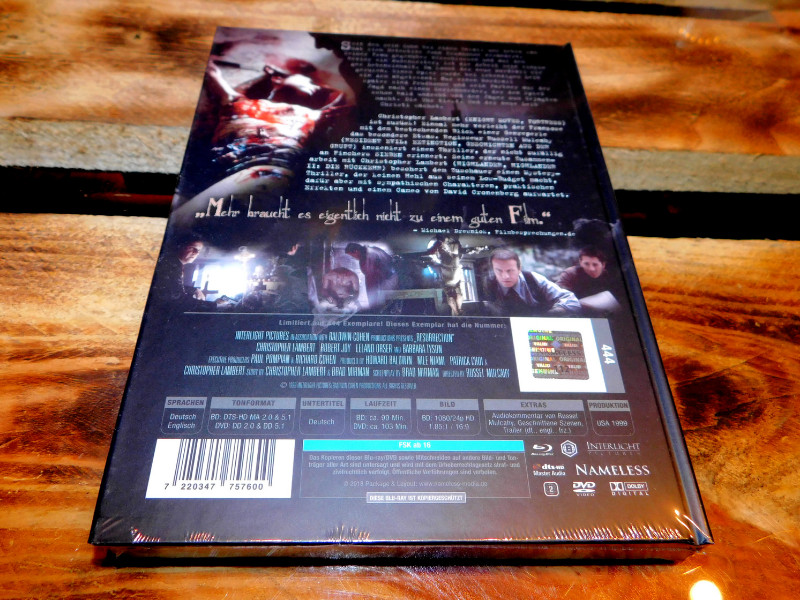 Die Edition ist liebevoll und aufwendig gestaltet. Das Cover des Mediabooks zeichnet sich durch eine beeindruckende und düstere Grafik aus, die einen Mann im Kampf zeigt, umgeben von einer unheilvollen, düsteren Atmosphäre. Mit Pistole bewaffnet und in einer dramatischen Pose, kämpft er gegen eine übernatürliche Präsenz, was sofort Neugier und Spannung weckt.