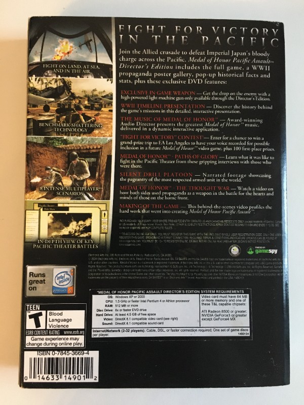 Hier biete ich das PC-Spiel Medal of Honor Pacific Assault in der seltenen Director''s Edition DVD an. Die Hülle ist noch in Folie verschweisst! Leider ist diese an der Oberseite (siehe letztes Foto) gebrochen.