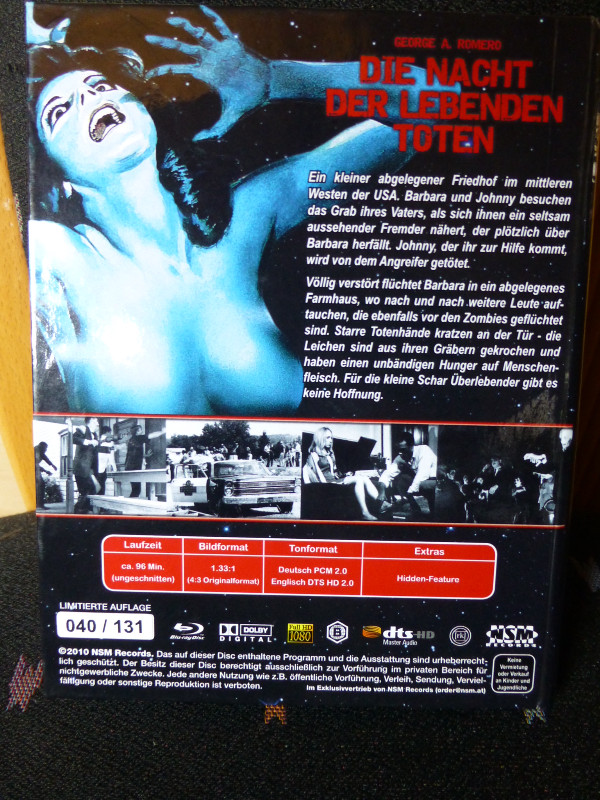 | Bemerkungen: Laufzeit: 95:52 Min. (94:11 Min. o. A.) Ohne EAN. Kleine BD-Hartbox, limitiert auf 131 Stück pro Covervariante. Hier Cover C abgebildet, zu erkennen an der Artikelnummer-Endung. 12 Kapitel MPEG2 codiert Hidden Features: Einfach im Hauptmenü nach ganz links oder ganz rechts gehen!  |