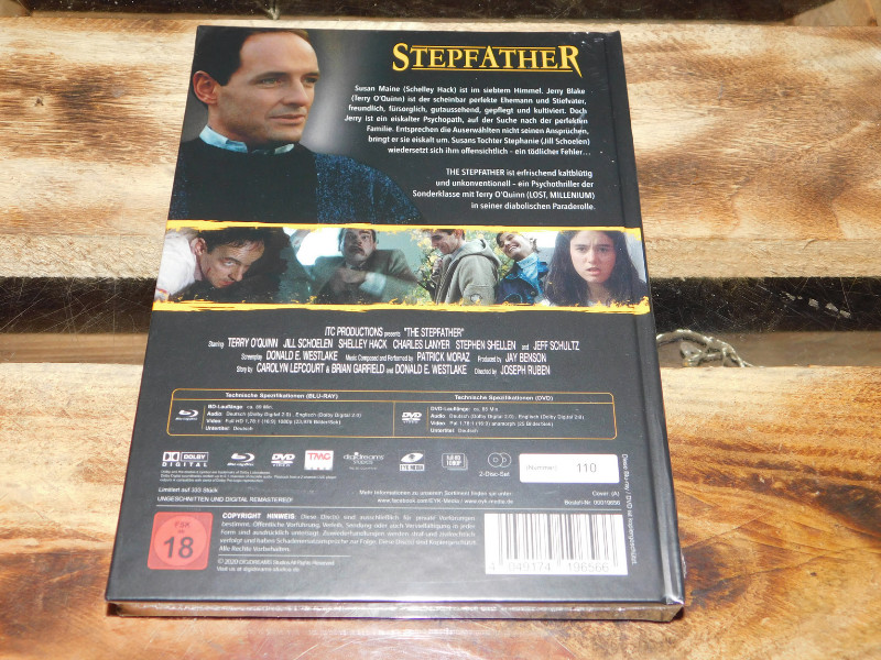 Das Mediabook von „Stepfather“ bietet nicht nur den Film selbst, sondern überzeugt auch durch ein wunderschön gestaltetes Cover und zusätzliche Inhalte, die Sie nirgendwo sonst finden werden. Jedes Mediabook ist speziell gestaltet und stellt ein echtes Schmuckstück in jeder Filmsammlung dar. Die Frontseite des Mediabooks fängt die düstere Atmosphäre des Films perfekt ein und garantiert für Aufmerksamkeit in Ihrem Regal.