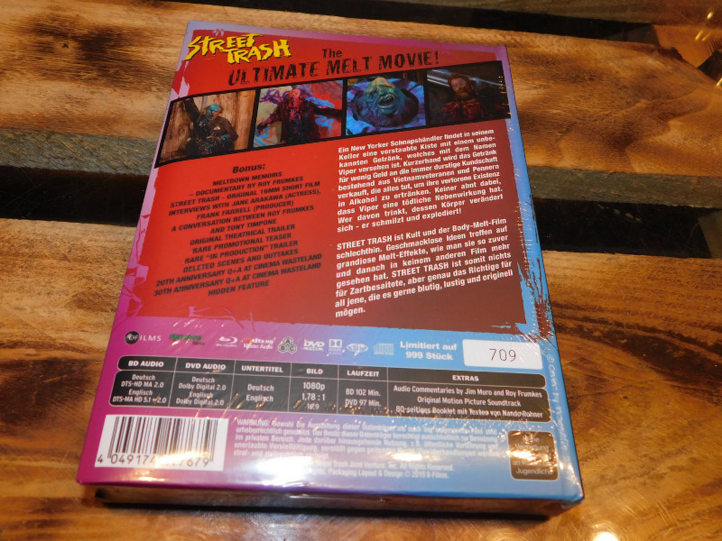 Erleben Sie einen Kultfilm der besonderen Art mit dem "Street Trash Mediabook" in der hochwertig wattierten OVP. Dieses seltene Sammlerstück ist ein unverzichtbares Highlight für jeden Liebhaber von Drama und außergewöhnlichen Filmen. Die Verpackung besticht durch ihre überragende Verarbeitung und Detailverliebtheit. Die wattierte Hülle bietet nicht nur Schutz, sondern auch eine haptische Freude für jeden Sammler. Dank der hochwertigen Blu-ray-Qualität können Sie den Film in bester Auflösung genießen. Seien Sie einer der wenigen Glücklichen, die diesen RAR (rare oder seltene) Artikel in Händen halten.