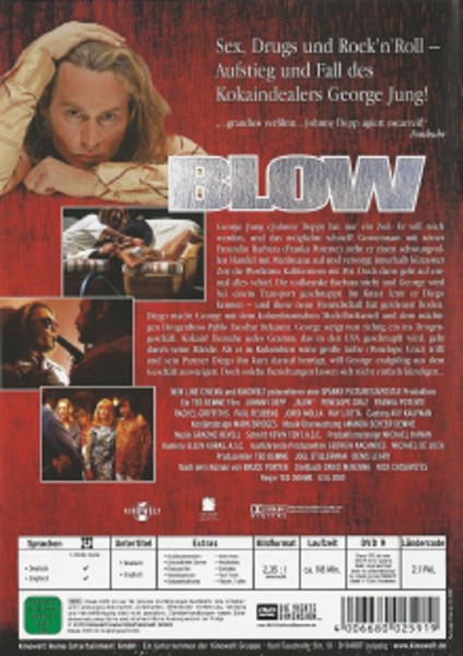 Blow erzählt die atemberaubende Geschichte von George Jung (gespielt von Johnny Depp), einem jungen Mann, der seinen Weg in die berüchtigte Drogenszene der 70er und 80er Jahre findet. Gezeigt wird sein Aufstieg und Fall in der gefährlichen Welt des Kokainhandels, eine Reise, die sowohl glamourös als auch tragisch ist. Penélope Cruz spielt Georges Liebhaberin Mirtha, während Franka Potente seine treue Partnerin Barbara Buckley verkörpert.
