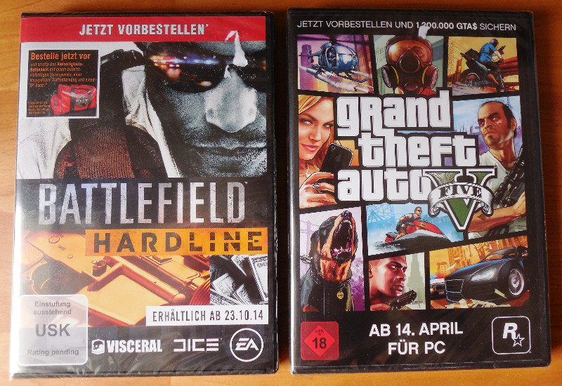 Battlefield Hardline & Grand Theft Auto V ( five ) original eingescheißt – PC CDs -NEU !