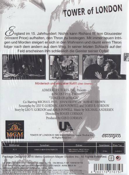 Tauchen Sie ein in das düstere und packende Meisterwerk „Tower of London - Der Würger“, präsentiert von der Horror-Ikone Vincent Price und dem renommierten Regisseur Roger Corman! Diese ungeschnittene DVD-Premiere verspricht ein einzigartiges Filmerlebnis für alle Liebhaber des Horrorgenres.