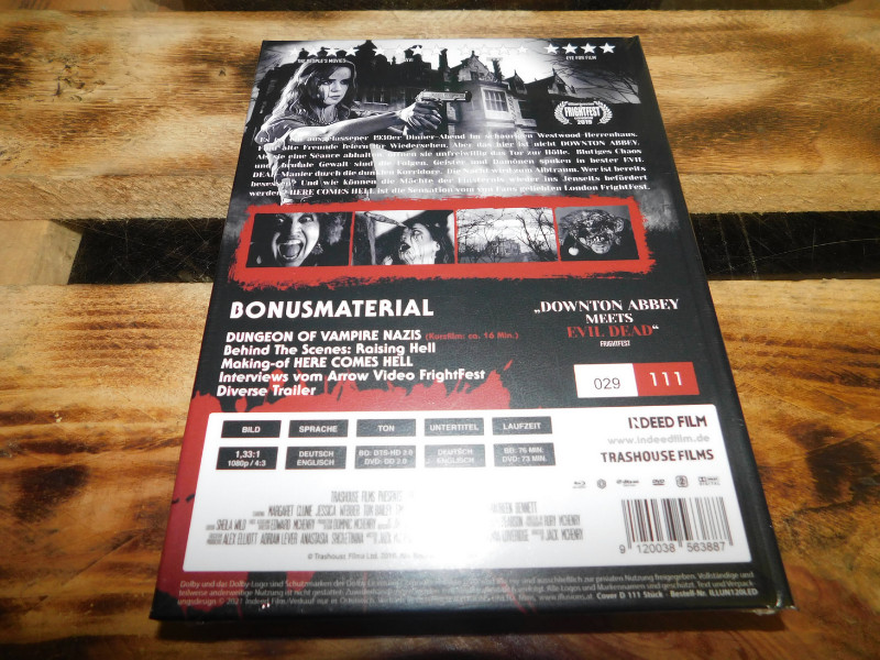 Here Comes Hell begeistert durch seine aufwendig gestaltete Aufmachung im Mediabook-Format. Die Edition ist streng limitiert und somit ein besonderes Highlight für Sammler und Horror-Fans. Jede Ausgabe ist neu und originalverpackt, wodurch sie ihren Wert langfristig behält.