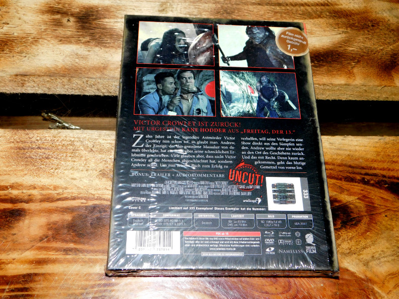 Blickfang für Sammler: Der gruselig gestaltete Einband mit Victor Crowleys furchterregendem Konterfei zieht jeden Blick auf sich und sorgt für Gänsehaut schon beim Anblick des Covers. Durch die begrenzte Stückzahl wird dieses Mediabook zu einem echten Schatz für jeden Sammler und bietet auch bei Freunden und Bekannten Gesprächsstoff.