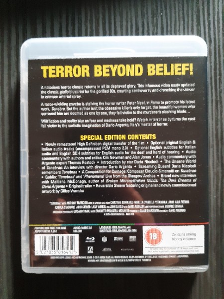 Erleben Sie den ultimativen Nervenkitzel mit der ungeschnittenen Version des Klassikers "Tenebrae" von Meisterregisseur Dario Argento. Diese Blu-ray Disc präsentiert den Film in atemberaubender Bild- und Tonqualität, wie Sie es noch nie zuvor erlebt haben. Der berühmte Giallo-Thriller verspricht Spannung pur und intensive Momente des Grauens. Die hochwertige Arrow-Veröffentlichung garantiert Fans eine Fülle an exklusivem Bonusmaterial, darunter Interviews, Making-ofs und geschnittene Szenen, die jedes Sammlerherz höher schlagen lassen.