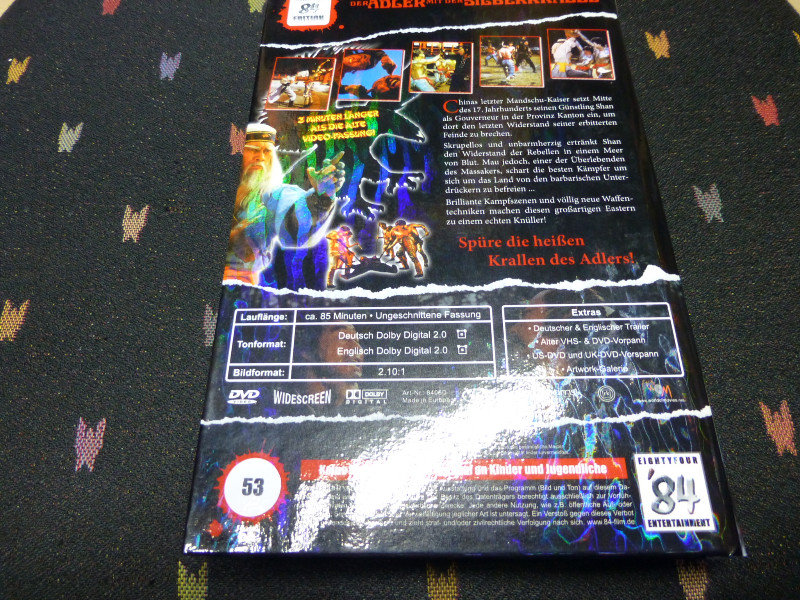 Erleben Sie mit „Der Adler mit der Silberkralle“ ein actiongeladenes Abenteuer, das die besten Elemente klassischer Eastern-Filme vereint! Diese exklusive DVD in der „Großen Hartbox“ bietet Sammlern und Filmfans eine besondere Präsentation, die durch ihre exquisite Verpackung und die hochwertige Produktion besticht. Der Film entführt Sie in die Welt der Martial-Arts-Kämpfer mit beeindruckenden Kampfszenen und einer packenden Geschichte. Ein unverzichtbares Highlight für jeden Eastern-Liebhaber und Perfektion in ihrer eindrucksvollsten Form. Greifen Sie zu und bereichern Sie Ihre Sammlung mit diesem außergewöhnlichen Filmklassiker!