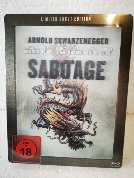 Tauchen Sie ein in die explosive Welt von Sabotage, einem packenden Action-Film mit Arnold Schwarzenegger in der Hauptrolle. Diese Limited Uncut Edition ist ein Muss für jeden Sammler und Liebhaber hochwertiger Steelbooks. Der einzigartige Lenticular-Effekt des Covers zieht sofort in seinen Bann und macht dieses Steelbook zu einem echten Hingucker in jeder Sammlung. Erleben Sie die kompromisslose Action und den Adrenalinrausch dieser fesselnden Geschichte in atemberaubender Blu-Ray-Qualität.