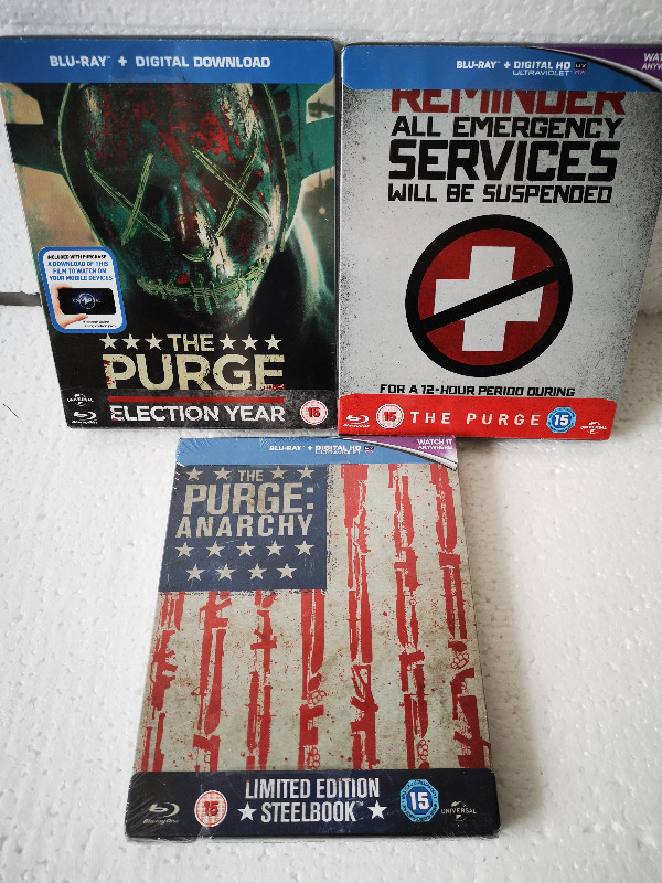 Thematisch erinnert die Reihe an andere dystopische Stoffe wie The Hunger Games oder The Platform, bleibt aber deutlich härter und direkter. Wenn du intensive Spannung, ein klares Genreprofil und eine Prise sozialkritische Bitterkeit suchst, dürfte The Purge 1-3 auf Blu-ray genau dein Regal treffen.
