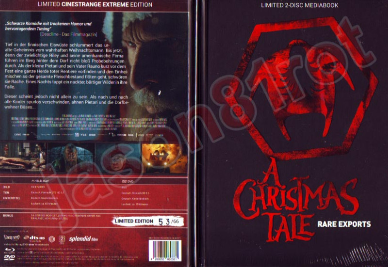 Tauchen Sie ein in die geheimnisvolle und düstere Welt von "Rare Exports - A Christmas Tale". Diese limitierte und nummerierte Mediabook-Edition ist ein echtes Sammlerstück (Limited Edition No. 53 / 666) und ein Muss für jeden Horror-Fan und Sammler. Die CINESTRANGE EXTREME EDITION bietet Ihnen sowohl die Blu-ray- als auch die DVD-Version dieses einzigartigen Films, der eine finnische Legende auf unvergessliche Weise zum Leben erweckt.