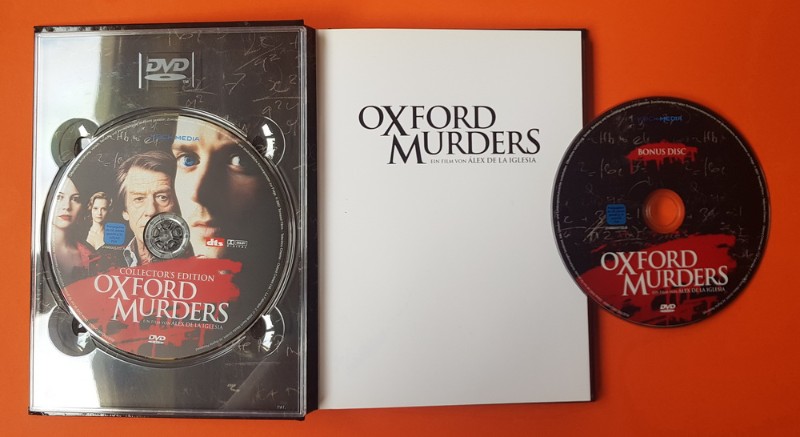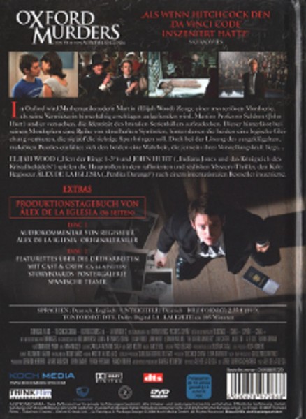 Titel: Oxford Murders Format: DVD Edition: 2-Disc Collector's Edition Darsteller: Elijah Wood, John Hurt Regie: Álex de la Iglesia Kategorie: Krimi/Thriller