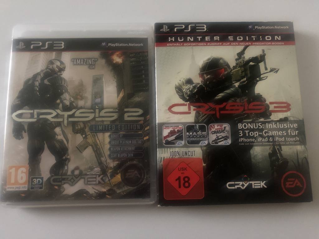 Tauche ein in eine Welt voller packender Action, beeindruckender Grafik und revolutionärer Technologie mit den Blockbuster-Titeln "Crysis 2" und "Crysis 3" für die PlayStation 3. Beide Spiele sind Meisterwerke von Crytek und EA, die dich in eine postapokalyptische Zukunft entführen, in der deine taktischen Fähigkeiten und Reflexe auf die Probe gestellt werden.