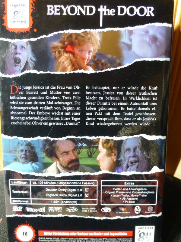"Beyond the Door - Vom Satan gezeugt" erzählt die schockierende Geschichte einer Frau, die von unheimlichen Kräften heimgesucht wird. Das Böse lebt in ihr und wächst mit jeder Minute, die vergeht. Die Stimmung ist intensiv und die düstere Atmosphäre wird Deine Nerven bis zum Zerreißen spannen. Ein Muss für Liebhaber des gepflegten Horrors!