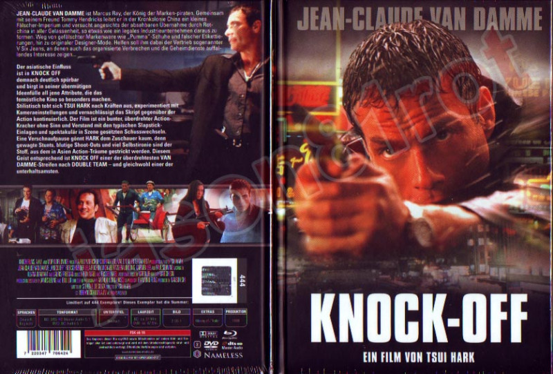 Erleben Sie den mitreißenden Actionfilm "Knock Off" in einer exklusiven und streng limitierten Mediabook Edition (444 Stück) – neu und originalverpackt, ungekürzt und unzensiert (uncut). Dieser heißbegehrte Sammlergegenstand ist ein Muss für alle Fans von Jean-Claude Van Damme und bietet atemberaubende Action und packende Storyline unter der Regie des gefeierten Tsui Hark. In einzigartiger Weise kombiniert dieser Film Elemente von Spannung und explosiven Kampfszenen, die Ihr Heimkino zu einer wahren Sensation machen werden.