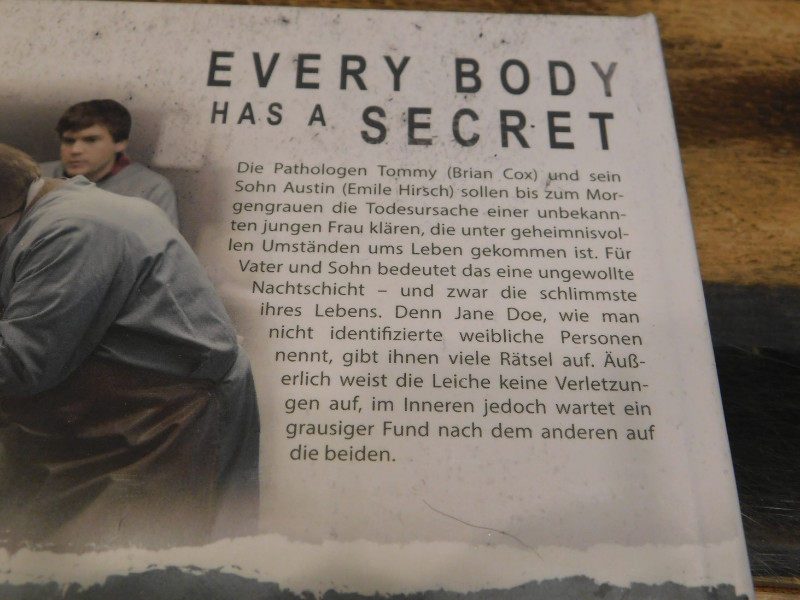 „The Autopsy of Jane Doe“ erzählt die unheimliche Geschichte einer mysteriösen jungen Frau, deren Autopsie schreckliche Geheimnisse und übernatürliche Phänomene offenbart. Das Mediabook selbst überzeugt durch hochwertige Verarbeitung, das atmosphärische Coverdesign, sowie den unvergesslichen Inhalt des Films.