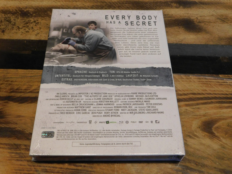 „The Autopsy of Jane Doe“ erzählt die unheimliche Geschichte einer mysteriösen jungen Frau, deren Autopsie schreckliche Geheimnisse und übernatürliche Phänomene offenbart. Das Mediabook selbst überzeugt durch hochwertige Verarbeitung, das atmosphärische Coverdesign, sowie den unvergesslichen Inhalt des Films.