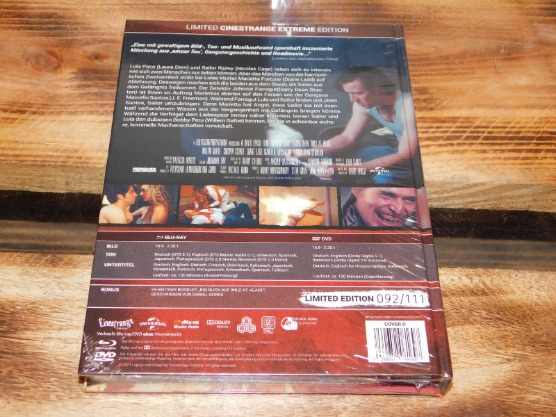 Das Mediabook D 092 v. 111 besticht durch seine detailverliebte Gestaltung und die beeindruckende Cover-Art, die die Leidenschaft und Intensität der Geschichte von Sailor und Lula perfekt einfängt. Sammler und Film-Enthusiasten werden die sorgfältig gestaltete Verpackung und die erstklassige Verarbeitung zu schätzen wissen.