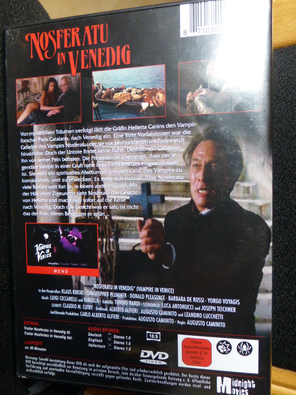 Erleben Sie mit Nosferatu in Venedig ein unvergleichliches Horror-Spektakel. Diese DVD präsentiert Ihnen den düsteren Klassiker mit einem der eindrucksvollsten Vampirgrafen aller Zeiten. Der Film, der auf einer faszinierenden Legende beruht, entführt Sie in die unheimlichen Gassen von Venedig und zeigt die unsterbliche Geschichte von Nosferatu. Mit beispiellosen schauspielerischen Leistungen und unvergesslichen Szenen ist dieser Film ein Muss für alle Liebhaber des Genres.