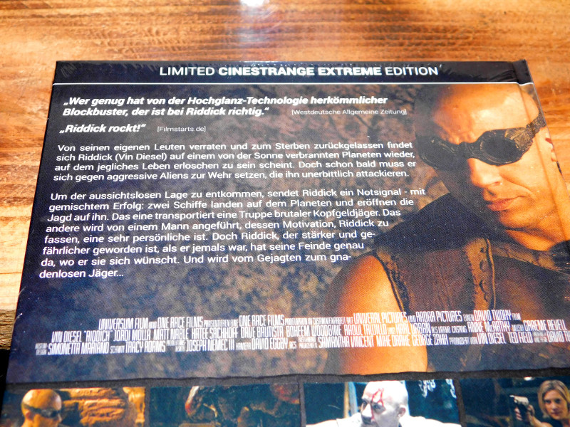 Diese Mediabook-Edition enthält die Extended Version des Films, die um viele spannende Szenen erweitert wurde und somit tiefere Einblicke in die Handlung und die Charaktere bietet. Mit dieser erweiterten Fassung erleben Sie die Welt von Riddick noch intensiver und unvergleichlicher.
