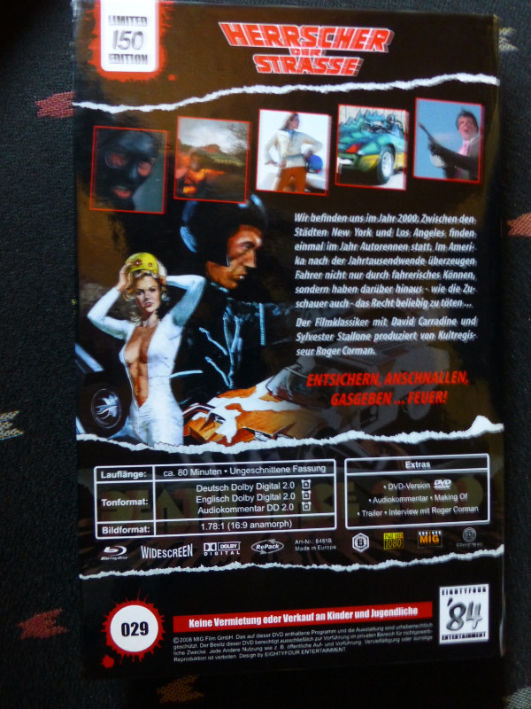 | Extras: | • DVD-Version (Widescreen) (KNM/Movie-Power-DVD) • Audiokommentar von Roger Corman & Mary Woronov • Making Of (VoiceOver) [10:17 Min.] • Englischer Kinotrailer [0:59 Min.] • Death Outside Trailer [2:12 Min.] • Interview mit Roger Corman (Voiceover) [5:31 Min.] |