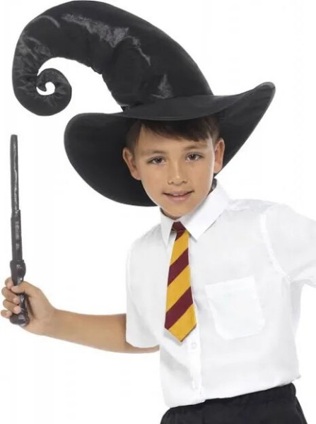 Wizard Kit, Schwarz, Mit, Krawatte, Hut & Zauberstab von Smiffys, Einheitsgröße
