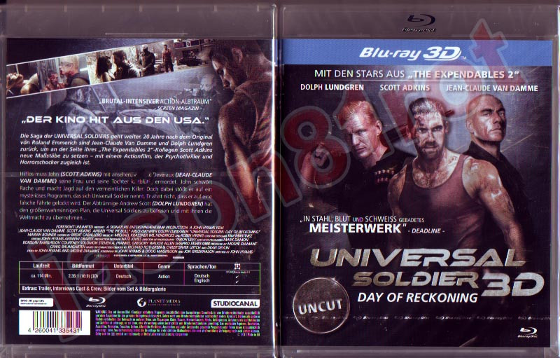 Erleben Sie die ultimative Action mit "Universal Soldier - Day of Reckoning - uncut 3D" auf Blu-ray in der Kategorie Action! Mit den renommierten Action-Stars Dolph Lundgren, Scott Adkins und Jean-Claude Van Damme bietet dieser Film atemberaubende Kampfszenen und eine fesselnde Handlung, die sowohl Fans der Universal Soldier-Saga als auch neue Zuschauer begeistert. Die ungeschnittene Version sorgt für ein intensives Filmerlebnis voller Spannung, das Sie nicht verpassen dürfen.